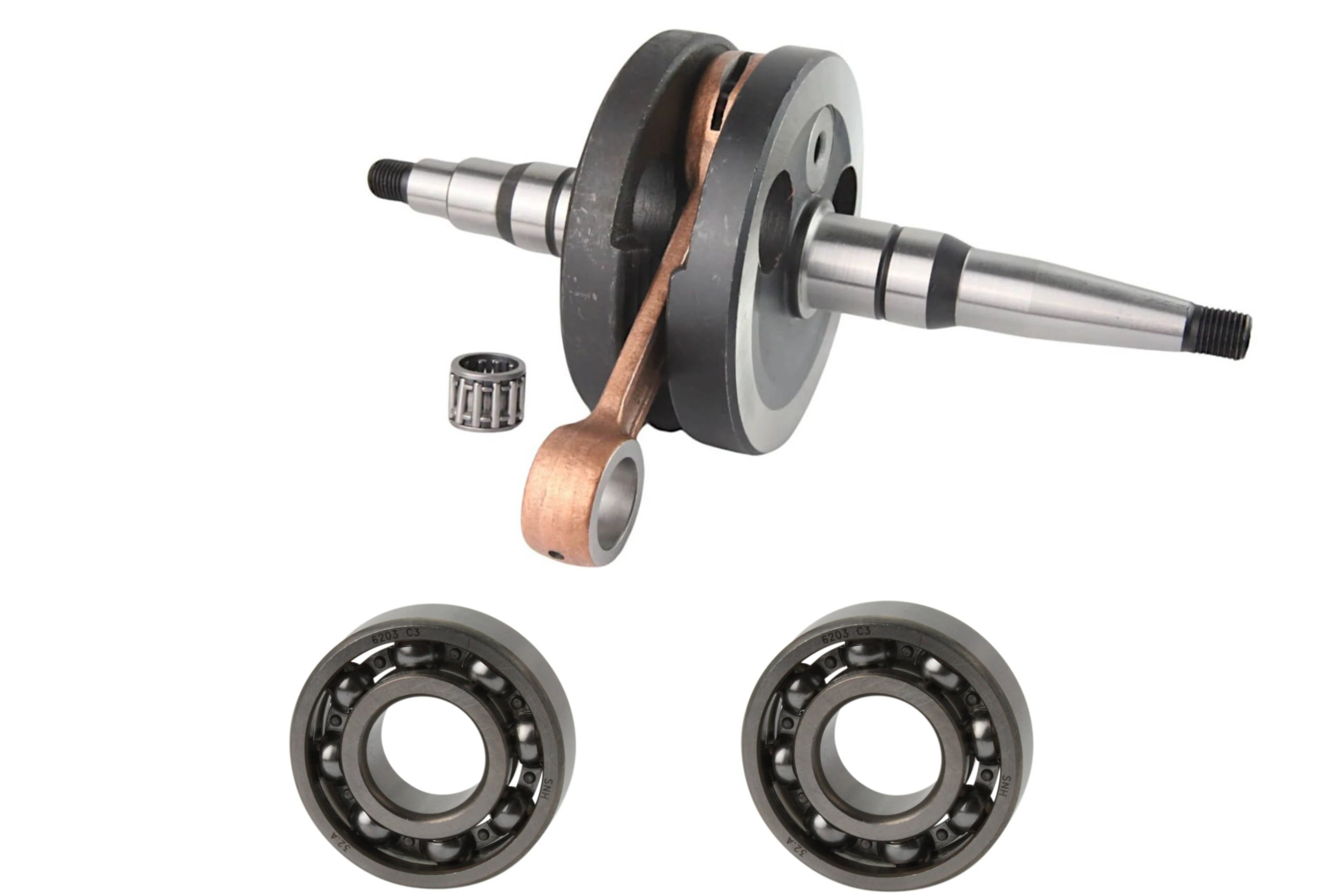 Die Kurbelwelle wird komplett mit einem Nadellager für den Kolbenbolzen geliefert.