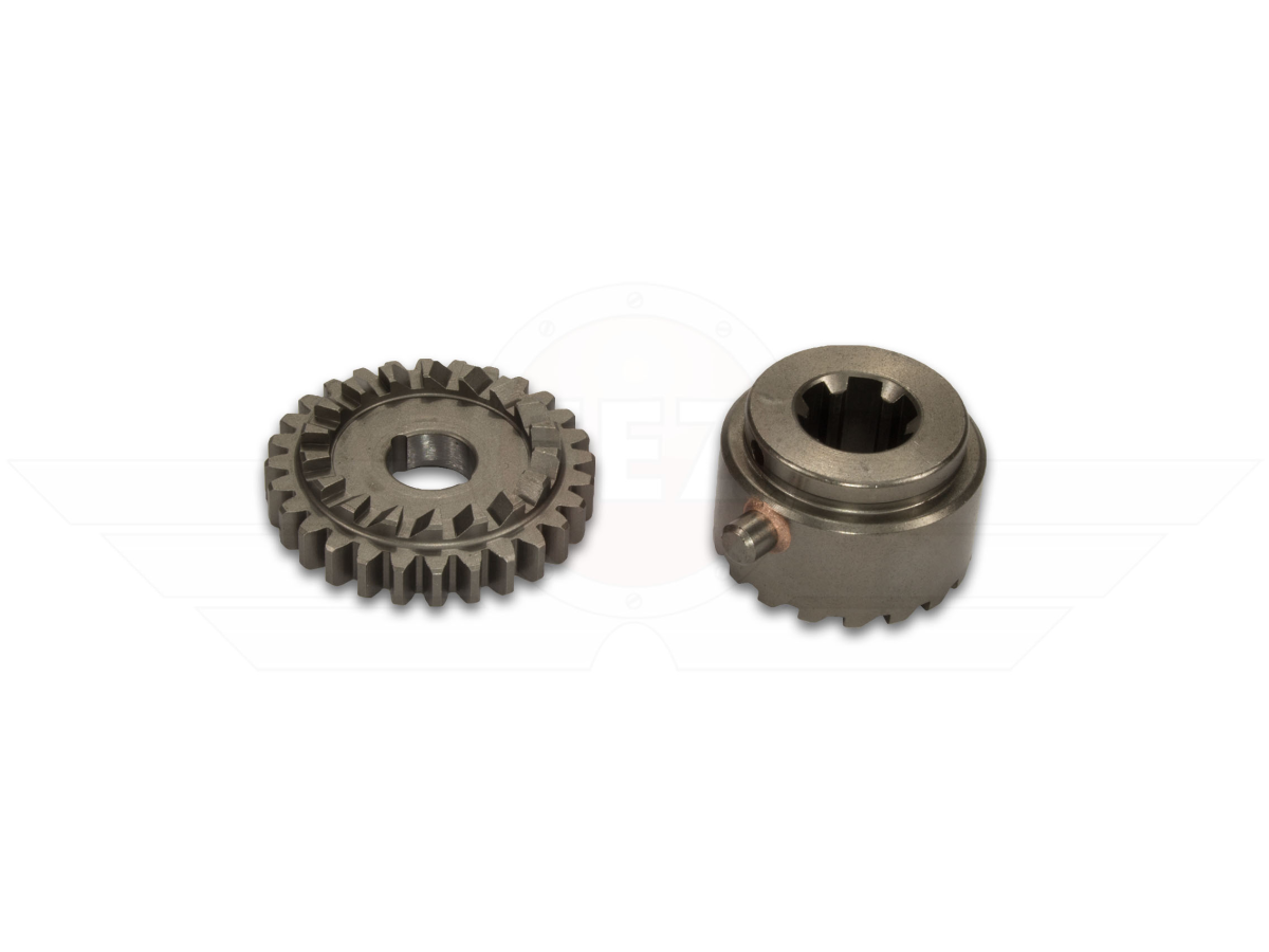 1x Kickstarterrad (28 Zahn) und Mitnehmer für Kickstarterwelle im Satz.